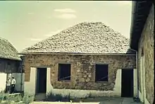 The stables opposite the gaol site were constructed in 1891 and remained in use until 1955. The present structure replaced a timber building erected on this site in 1860, which were destroyed by fire.[6] The present building is a single storey stone range with brick quoining and stone window dressings. It has a shallow pitched corrugated iron roof with gables. The façade facing the street is solid stonework with five small high level openings.[4]: 224–225 Restoration of the building began in the 1970s and the stables are currently open as part of the Old Gaol Museum complex.[7]