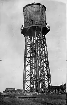 On March 17, 1916, the water system was completed, including a wooden elevated water storage tank and underground wooded water mains. The project cost $15,000 (some records say $18,000).
