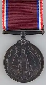 The Newfoundland Volunteer War Service Medal is a medal created to honour those from the Dominion of Newfoundland who served in British Forces outside of the Dominion during World War II. It was issued to those who did not receive a volunteer war service medal from another country, including Canada, and who had volunteered and served in units or organizations contributed by the Dominion to the allied war effort. The period of qualifying service was from September 3, 1939 through September 2, 1945,[3] but was not established until 1981. It was designed by Ian H. Stewart CM (who was at that time Senior Designer in Residence at Memorial University of Newfoundland in St. John's).