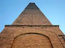 The brick chimney is located along Mina Parade, approximately 40 metres (130 ft) from the road. Access to the site is via an easement. The chimney rises to a height of approximately 55 metres (180 ft), and is, consequently, a prominent landmark. The square base is approximately 4.7 metres (15 ft) long. The chimney rises about 10 metres (33 ft) before tapering uniformly to about 3 metres (9.8 ft) square. On each face of the bottom section of the chimney there are a number of arched recesses, which appear to be decorative elements. One of the recesses, on the south side of the chimney, facing Mina Parade, has been enclosed with concrete. Several bands of brick as the top of the chimney flue provide further decorative elements to the structure. A metallic band running the length of the chimney on its eastern side, appears to be related to deflecting lightning strikes. Similarly, on the upper section of the chimney, a number of metallic bands are attached around the structure.[2]