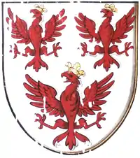 Richard II Strode (d.1464) (son), who married Margaret Fortescue, a daughter of Sir Henry Fortescue (fl. 1426), Lord Chief Justice of the Common Pleas in Ireland, who had married as his first wife Jane Bozun, daughter of Edmond Bozun of Wood in the parish of Woodleigh,[16] Devon, and Wood became the residence of his son and heir John Fortescue, and passed to his male descendants for three generations[17] and then to Fortescue cousins. Sir Henry was a younger son of the Fortescue family whose earliest known seat in Devon was Wympstone in the parish of Modbury,[18] later Earls Fortescue seated at Castle Hill, Filleigh. Richard II Strode's canopied effigy survives in St Mary's Church, Plympton, against the north chancel aisle of the north aisle chapel.