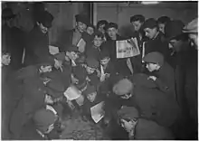 At the turn of the century, newsboys were essential to newspaper distribution. While morning editions of the paper were often delivered directly to subscribers, the afternoon editions relied almost exclusively on newsboys to sell.[2] Most of the newsboys came from poor immigrant families and sold papers in the afternoons and evenings, after their school finished. They bought papers at 50¢ per hundred, and sold them at 1 cent each for a profit of half a cent per paper.[2]