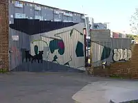- A figurative mural in Goddard Lane (off King St near the Newtown High School of the Performing Arts) which features distinctive depictions of a spray-can, a cat and a fish (probably by Phibs); this mural was painted over with a new design in Feb. 2008.