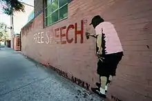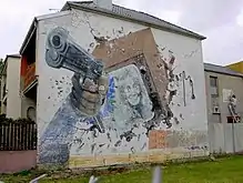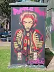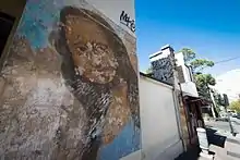 Since the 1980s, the area surrounding the Sydney inner west suburb of Newtown, New South Wales (NSW), Australia—including the suburbs of Newtown, Enmore, Erskineville, Camperdown and St Peters—has been known for its wide range of prominent graffiti and street art on walls. The public visual art in the Newtown area consists of a variety of styles and methods of execution, including large-scale painted murals, hand-painted (or sprayed) political slogans, hand-painted figurative designs, spray painted semi-abstract designs (including large-scale and elaborate semi-pictorial) "tags"), and other stylistic developments such as stencil art and street poster art (also known as "wheatpasting"), "Yarn bombing", and sculptural items cast from plaster and other materials.
