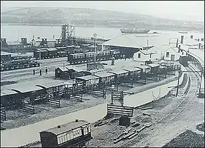 On 1 September 1906, the station was again renamed Neyland.[6][7] This followed the opening on 30 August 1906 of the new harbour at Fishguard, the associated railway station, the Clarbeston Road and Letterston Railway giving a shorter route to Fishguard from Clarbeston Road and the transfer to Fishguard of the steamship service to Waterford. Neyland then rapidly declined in importance.[8]