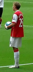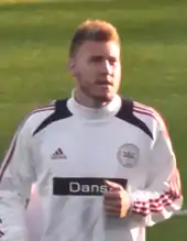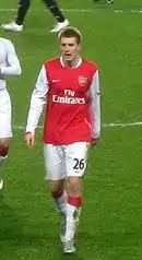 Nicklas Bendtner (Danish pronunciation: [ˈne̝klæs ˈpenˀtnɐ]; born 16 January 1988) is a Danish former professional footballer who played as a forward. His preferred position was centre-forward, but he has also played on the right side of attack, and occasionally on the left. A large, tall, and physically strong player, he was known for his ability in the air and possessed a powerful header.[4][5][6]