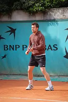 Nicolas Kiefer (German pronunciation: [ˈkiːfɐ];[1][2] born 5 July 1977) is a former German professional tennis player. He reached the semifinal of the 2006 Australian Open and won a silver medal in men's doubles with partner Rainer Schüttler at the 2004 Summer Olympics in Athens. Kiefer's career-high singles ranking was world No. 4, achieved in January 2000.