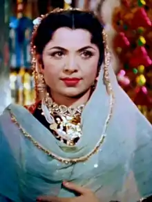 Her first big picture was Shikayat (1948), made in Poona; then came Bela (1947), a Ranjit production, and after that many more in which she played leading roles. She played the role of the court dancer Bahar, who envies Prince Salim's (Dilip Kumar) love for Anarkali (Madhubala) in the film Mughal-e-Azam (1960). The songs Teri mehfil mein and jab raat ho aisi matwali were picturised on her.[3] Her other films included Dara (1953) and Khyber.[2]