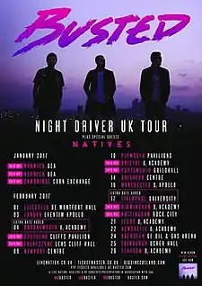 The Night Driver Tour 2017 is a 2017 concert tour by English pop rock band Busted.[1] It will support the band's third studio album Night Driver (2016) and will be their second tour since their split in 2005.[1]