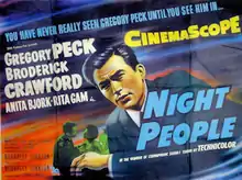 Night People is a 1954 American drama film starring Gregory Peck, Broderick Crawford, Anita Björk, and Buddy Ebsen, directed by Nunnally Johnson. It was co-written by Jed Harris, the theatrical producer.