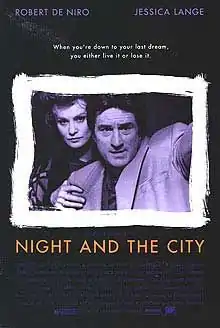 Night and the City is a 1992 American neo-noir[2] crime drama film and a remake of the 1950 film noir of the same name, itself an adaptation of Gerald Kersh's 1938 novel. The film stars Robert De Niro and Jessica Lange and is directed by Irwin Winkler from a script by Richard Price.