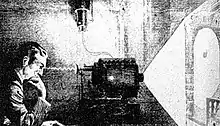 Tesla visited the fair for a week during its six-month run to attend the International Electrical Congress and put on a series of demonstrations at the Westinghouse exhibit.[120][121] A specially darkened room had been set up where Tesla showed his wireless lighting system, using a demonstration he had previously performed throughout America and Europe;[122] these included using high-voltage, high-frequency alternating current to light wireless gas-discharge lamps.[123]