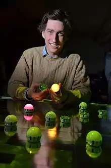 Correll's research is on Swarm Robotics, Swarm Intelligence, and Self-organization. He is using these concepts to equip composite materials with intelligence and enabling robots with autonomy,[5] for which he coined the term Robotic Materials[6] and founded a company of the same name,[7] which markets robotic manipulation systems based on smart tactile sensors, skins and hands.