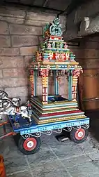 The Vaikasi Vasanthothsavam, Pillai Lokacharyar festival and Kurathazhwar festival, each celebrated for ten days are the most prominent festivals of the temple, and for the surrounding villages. Vaikasi Vasanthothsavam is celebrated during the Tamil month of Vaikasi (May–June) when devotees pull the chariot round the streets of Thiruthangal. Verses from Nalayira Divya Prabandham are recited by a group of temple priests amidst music with nagaswaram (pipe instrument) and tavil (percussion instrument).[5] The other major festivals celebrated are Srijayanthi Uriyadi, Pavitrostavam, Garudotsavam, Navarathri, Karthigai, Thirumangai Azhwar day, Vaikunta Ekadasi and Kalyana Utsavam. During Chitra Pournami, the festival image has a holy dip in Arujan river, decorated and mounted on a horse mount and taken around ten villages around Thiruthangal. On the fifth day of Adi Pooram, the festival image of the image is brought in Garuda mount and taken to Srivilliputhur Divya Desam along with four other temples.[6]