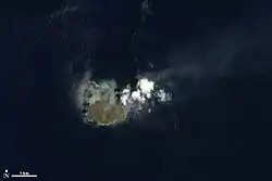 There were further eruptions in 2017,[8] 2018, and in 2019-2020.[9] As of 14 August 2020, it is about 4.1 km2 (1.6 sq mi) and over 2 km (1.2 mi) in diameter.[1]