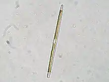 Nitzschia is a common pennate marine diatom. In the scientific literature, this genus, named after Christian Ludwig Nitzsch, is sometimes termed Nitzchia, and it has many species described, which all have a similar morphology.