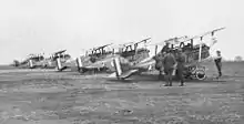 The squadron moved to Shawbury the day after it was formed and then to Ternhill on 29 June. On 1 September it became part of the 1st Training Wing when that unit was established to command the four AFC training squadrons in England (the others being No. 5, No. 7 and No. 8 Squadrons).[4] In January 1918 the squadron was redesignated No. 6 Squadron AFC; the other AFC units were also renamed at this time.[3] No. 6 Squadron moved to Minchinhampton on 25 February.[3] The squadron used several different types of aircraft to train pilots, including the Bristol Scout D, Sopwith 1½ Strutter, Sopwith Pup, Avro 504, Airco DH.5, Royal Aircraft Factory S.E.5 and Sopwith Camel.[5] While most of these aircraft types were outdated and suitable only for elementary flight training, the S.E.5s, Sopwith Pups and Sopwith Camels were up to date and in service with combat units in France.[6]