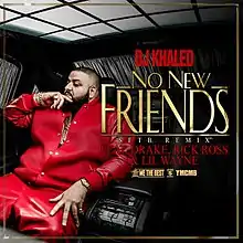 "No New Friends" is a hip hop and trap song by American musician DJ Khaled, released as the lead single from his seventh studio album, Suffering from Success. The song features rappers Drake, Rick Ross and Lil Wayne, and features production from Robert Bullock, Boi-1da, Vinylz, and Noah "40" Shebib. The song was released for digital download in the United States on April 19, 2013. The song has peaked at number 37 on the US Billboard Hot 100, making it his sixth top 40 single on that chart.