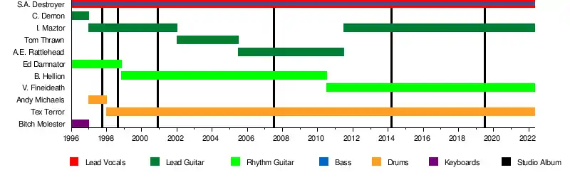 - S.A. Destroyer (Kenneth Svartalv): vocals/bass (1996-)