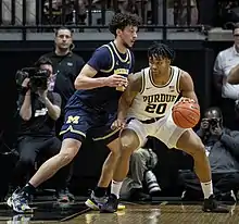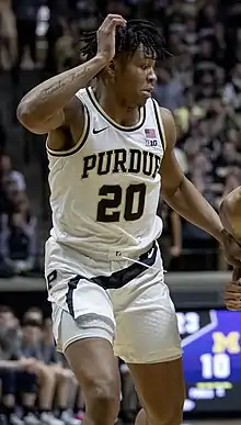 As a freshman at Purdue, Eastern averaged 2.9 points, 2.5 rebounds and 1.1 assists per game in the role of a defensive specialist off the bench.[8][9] After the season, he declared for the 2018 NBA draft without hiring an agent, before withdrawing from the draft.[10] On March 9, 2019, Eastern scored a career-high 15 points in a 70–57 win over Northwestern.[11] In his sophomore season, he became a regular starter and averaged 7.5 points, a team-high 5.5 rebounds, 2.5 assists and 1.1 steals per game, earning Big Ten Conference All-Defensive honors. Eastern became the first Purdue point guard to lead the team in rebounding since at least 1954.[12] By the time he was a junior, he became Purdue's top defender, with the ability to guard all five positions.[13] As a junior, Eastern averaged 4.9 points, four rebounds and 2.7 assists per game, earning Big Ten All-Defensive accolades for a second time. He led his team in assists and steals.[8] Following the season, he declared for the 2020 NBA draft.[14]