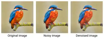 Non-local means is an algorithm in image processing for image denoising. Unlike "local mean" filters, which take the mean value of a group of pixels surrounding a target pixel to smooth the image, non-local means filtering takes a mean of all pixels in the image, weighted by how similar these pixels are to the target pixel. This results in much greater post-filtering clarity, and less loss of detail in the image compared with local mean algorithms.[1]