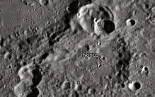 Nonius is a lunar impact crater. It is located in the rugged southern highlands on the Moon's near side. It was named after 16th century Portuguese mathematician Pedro Nunes, Latinized as Nonius.[1] The northwestern side and about half the interior floor are overlain by the rim and outer rampart of the walled plain Walther. About half its diameter to the southeast is the smaller crater Kaiser, and slightly farther to the south lies Fernelius.