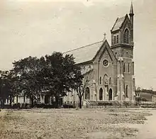 In 1876 the Sacred Heart Church was built on Walter Street for its large Irish Catholic population.[12] In 1865 Peter Cagger purchased the lot at the corner of Broadway and North Ferry Street for the Roman Catholic Diocese of Albany, which they used as the St. Vincent's Orphan Asylum. Upon his death his widow donated money to convert the building into a hospital, named St. Peter's Hospital in his honor. The hospital opened in 1869 with 33 beds and a staff of 7 doctors and the Sisters of Mercy as the nursing staff.[13] The hospital moved to its current location on New Scotland Avenue in 1930, the building on Broadway staying open as an out-patient clinic for another year before closing permanently.[14]