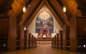 From 2008 to 2019, North American Martyrs offered most Masses at St. Alphonsus Church in Seattle's Ballard neighborhood, with a weekly mass at Holyrood Cemetery in Shoreline and Holy Week liturgies at the Bastyr University Chapel (formerly St. Edward Seminary) in Kenmore.