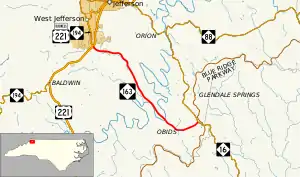 North Carolina Highway 163 (NC 163) is a primary state highway in the U.S. state of North Carolina. The highway serves as a direct route from West Jefferson towards Wilkesboro.