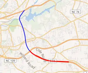 US 311 was removed from the road in 2019 after approval from AASHTO the previous year,[4][2] with I-74 becoming the freeway's sole designation. Upon completion of the eastern section of the Winston-Salem Northern Beltway, I-74 will be rerouted onto that road. As a result, the NC 192 designation will be created on the current section of I-74 between I-40 and the new freeway.[2]