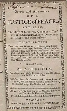 - Davis, James (1774). The Office and Authority of a Justice of Peace.