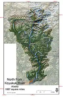 The North Fork of the Koyukuk River is one of the principal forks of the Koyukuk River, approximately 105 mi (160 km) long, in northern Alaska in the United States. It has a watershed area of 1,850 square miles (4,800 km2). It rises on the south slopes of the Continental Divide in the Brooks Range.
