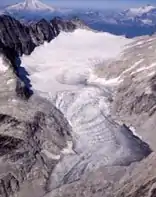 North Klawatti Glacier lies in a cirque to the east of Austera Peak, North Cascades National Park, in the U.S. state of Washington.[2] The glacier is approximately 1.4 mi (2.3 km) in length, .40 mi (0.64 km) in width at its widest and descends from 7,800 to 6,000 ft (2,400 to 1,800 m), where it terminates above Klawatti Lake. An arête divides North Klawatti Glacier from Klawatti Glacier to the south.[2] In 1993, it had an area of 1.48 km2.[3] The North Klawatti Glacier was one of four glaciers selected for glacier mass balance research.[3] From 1993 (when monitoring began) to 2013 the glacier had lost ~8 m of thickness. [4]