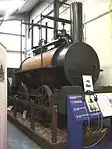 A.No.5 is an 0-6-0 side tank built-in 1883 by Kitson and Company, as works number 2509. It was the last working example of the 1841 patented Stephenson 'long boiler' design,[25] to produce higher steam pressure while retaining a small wheelbase. Unsuited for high speeds, they nonetheless satisfied a need for powerful shunters at certain industrial railways like the Consett Iron and Steel Company. Withdrawn in 1972 it passed to Beamish Museum and then the Tyne & Wear Museums Service at Monkwearmouth Station, Sunderland, where the Monkwearmouth Station Museum Association began its overhaul from a very derelict condition. It returned to steam in 1986. It was overhauled in 1995/6 and again in 2013/14.[24][26] Removed from service and placed back on static display in the museum in summer 2018.