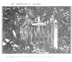 Although it is a few years since he paid a visit there Mr. Barton states that the grave near the old shed is that of an infant, about eighteen months old. He also stated that he had been informed that an adult, who died from the effects of a bite from a sea snake, was buried on the island.[7]