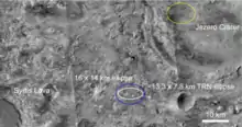 Although Northeast Syrtis survived the cut in third Mars 2020 Landing Site Workshops, it failed final completion. The landing ellipse of Northeast Syrtis is 16 x 14 km and the smaller ellipse is 13.3 × 7.8 km with the help of advanced technologyTerrain-Relative Navigation (TRN).[2][15]