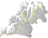County Road 862 (Norwegian: Fylkesvei 862) is a Norwegian county road in Troms og Finnmark county, Norway. The road is 115.6 kilometers (71.8 mi) long and it runs between the village of Straumsbotn in Senja Municipality and the city of Tromsø in Tromsø Municipality. Part of the route is one of eighteen designated National Tourist Routes in Norway.[1][2] The Tromsø Bridge and Sandnessund Bridge are both located on the route.