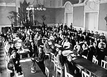 The Norwegian Labour Party's Women's Federation (Norwegian: Arbeiderpartiets kvindeforbund) was established in Christiania in 1901 and extended to cover the whole of Norway in 1909. Initially concerned with working conditions and voting rights, its interests were extended over the years. The movement was dissolved in 2005 when the Labour Party adopted equal gender distribution in all its bodies, both national and local. In its place, a looser "women's network" was set up within the party in order to bring women into leadership roles at all levels.[1][2]