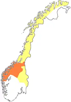 Note that contrary to the information in the map, the dialects of Rogaland, Aust-Agder and Trøndelag are not traditionally classified as East Norwegian, but as West Norwegian, South Norwegian and Trøndersk, respectively.