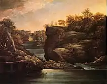The town of Norwich was founded on the site of what is now Norwichtown in 1659 by settlers from Saybrook Colony led by Major John Mason and James Fitch.[4] They purchased the land "nine miles square" that became Norwich from Mohegan Sachem Uncas.[5] One of the co-founders of Norwich was Thomas Leffingwell who rescued Uncas when surrounded by his Narragansett enemies, and whose son established the Leffingwell Inn.[6] In 1668, a wharf was established at Yantic Cove. Settlement was primarily in the three-mile (4.8 km) area around the Norwichtown Green. The 69 founding families soon divided up the land in the Norwichtown vicinity for farms and businesses.