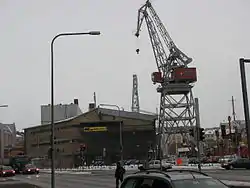 ![]() Nosturi and a "nosturi", as seen from a nearby street in winter. | |