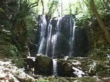The Smolare Waterfall is found above the village of Smolare, at an elevation of 630 m (2,067 ft), located deep in the Belasica Mountain where the Lomnica River springs from among the hundred-year-old beech wood trees.
