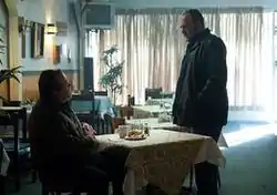 ![]() Stan Larsen (Brent Sexton, right) speaks with Janek Kovarsky (Don Thompson, left), not knowing that the man may be behind his daughter's murder. | |