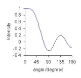 θ runs from 0 to 180 degrees, after which the function merely repeats itself. The plot for a 9-point quadratic/cubic smoothing function is typical. At very low angle, the plot is almost flat, meaning that low-frequency components of the data will be virtually unchanged by the smoothing operation. As the angle increases the value decreases so that higher frequency components are more and more attenuated. This shows that the convolution filter can be described as a low-pass filter: the noise that is removed is primarily high-frequency noise and low-frequency noise passes through the filter.[30] Some high-frequency noise components are attenuated more than others, as shown by undulations in the Fourier transform at large angles. This can give rise to small oscillations in the smoothed data.[31]