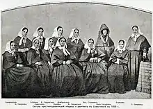 During the Crimean War the Grand Duchess Elena Pavlovna issued the call for women to join the Order of Exaltation of the Cross (Krestodvizhenskaya obshchina) for the year of service in the military hospitals. The first section of twenty-eight "sisters", headed by Aleksandra Petrovna Stakhovich, the Directress of the Order, went off to the Crimea early in November 1854.[20]