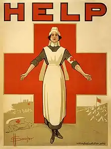 Red Cross chapters, which began appearing after the establishment of the International Committee of the Red Cross in 1863, offered employment and professionalization opportunities for nurses (despite initial objections from Florence Nightingale).[29] Catholic orders such as Little Sisters of the Poor, Sisters of Mercy, Sisters of St. Mary, St. Francis Health Services, Inc. and Sisters of Charity built hospitals and provided nursing services during this period.[30] In turn, the modern deaconess movement began in Germany in 1836.[31] Within a half century, there were over 5,000 deaconesses in Europe.[32]