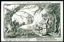 Nyctimene /nɪktɪmæni/ was, according to Roman mythology, the daughter of Epopeus, a king of Lesbos. In some versions of the story, she was raped by her father; while in others, she was seduced. Out of shame or guilt, she fled to the forest and refused to show her face in daylight. Taking pity on her, Minerva transformed her into the nocturnal owl which, in time, became a widespread symbol of the goddess.[1] In Ovid's Metamorphoses, the transformation was a punishment for "desecrating her father's bed" (patrium temerasse cubile), which insinuates that she had sexual intercourse with her own father, but no further explanation is given of whether she was raped, seduced or herself the seducer.[2]