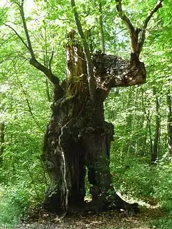 The park forests are rich in species that are well blended and amounted, even according to age. The shrub and hedge layer is not very pronounced and largely limited to a few rows alongside some paths and widely scattered individual shrubs. Typical are hazel, hawthorn, dogwood, privet, honeysuckle, snowball and elderberry in lighter locations. The herb layer is well developed. Hedge woundwort, Aposeris, yellow archangel, sanicle, wood avens and false-brome are found in the shade. In more open areas the wood bluegrass can be found and on the forest fringes grows the rare yellow star-of-Bethlehem. Ivy is widespread. Mistletoe is common on linden trees.