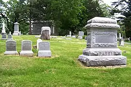 There is a Soldiers' Lot near the center of the cemetery,[13] which is administered by the U.S. Department of Veterans Affairs.[14] At one time 174 soldiers were buried at Oakdale, including the first Iowans to die in the Civil War at the Battle of Fort Donelson.[15] Most of the bodies were transferred in 1888 to Rock Island National Cemetery or Keokuk National Cemetery. The remaining 14 soldiers' graves were moved to the Grand Army of the Republic (GAR) plot in 1900. The plot was transferred from the GAR to the cemetery association in 1940 and the United States government took possession of it the following year. Today it contains the remains of 71 soldiers from the Civil War and Spanish–American War.[15]
