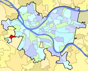 Oakwood is a neighborhood in Pittsburgh, Pennsylvania's West End. It has a zip code of 15205, and has representation on Pittsburgh City Council by the council member for District 2 (West Neighborhoods).